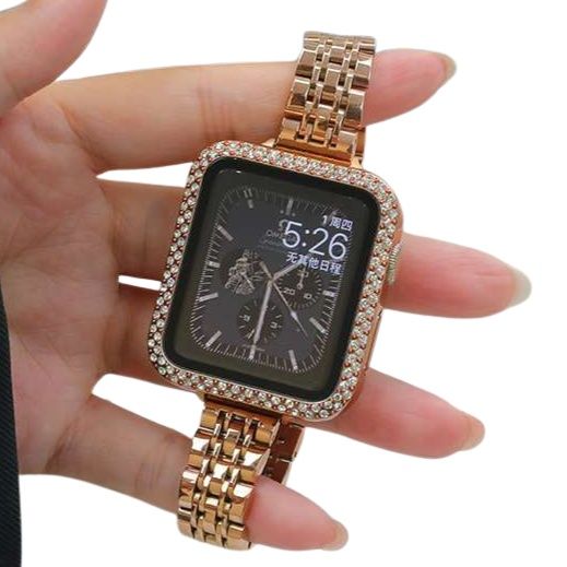 クリスタルの輝きとゴールドの組み合わせが、アップル ウォッチ SE ゴールドと調和して腕元を上品に演出します。