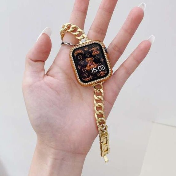 繊細に作り込まれたハートのチェーンが手首を優雅に彩り、アップル ウォッチ SE ゴールドの魅力をより一層引き立てます。