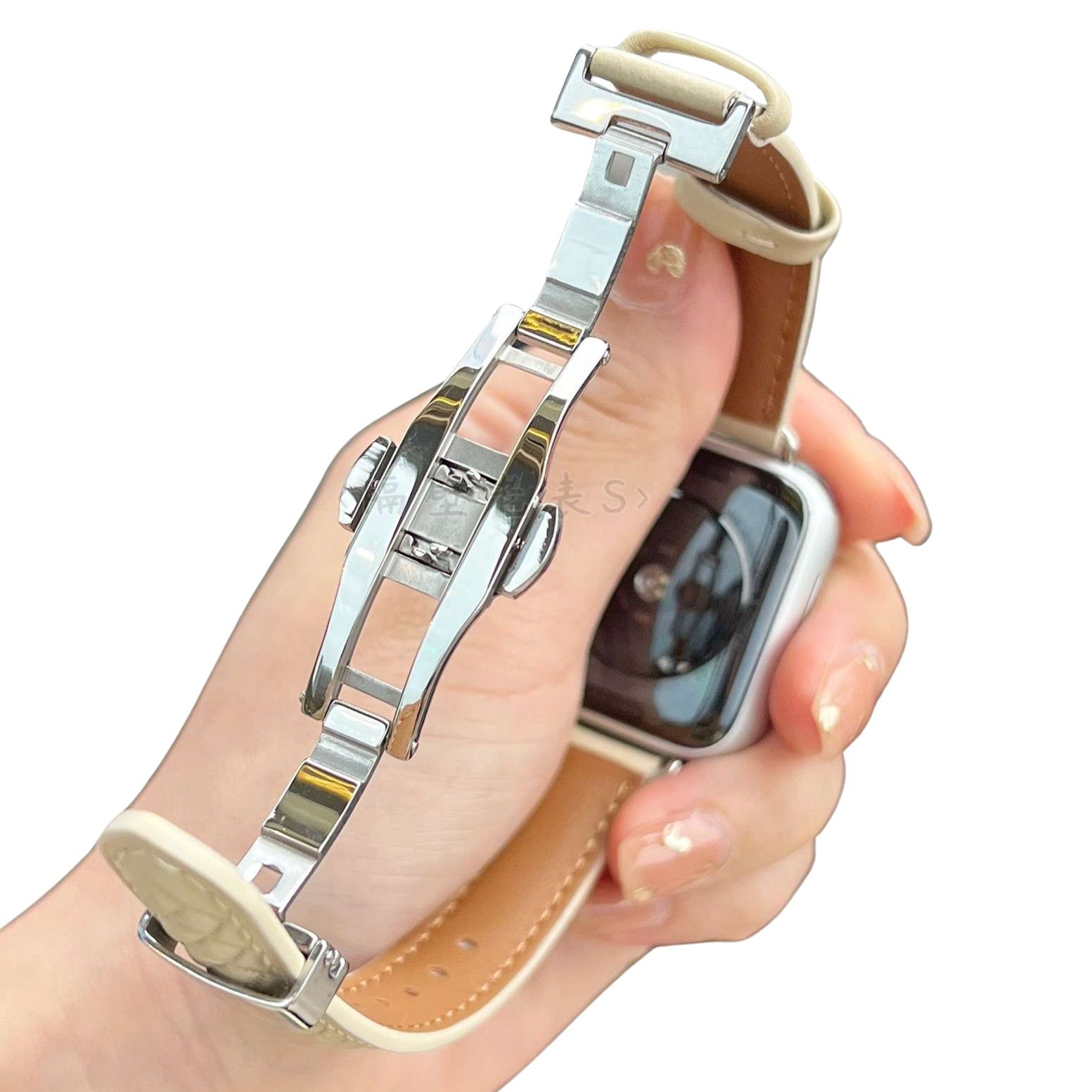 スペース グレイ apple watch バンド クロコ型押しレザー高級仕様