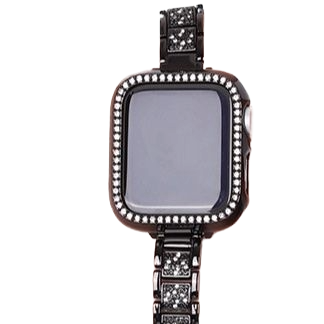 輝く装飾が目を引くアップルウォッチ用高級黒バンド キラキラベゼル付き