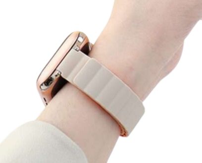 磁気式の革新的なデザインが特徴のホワイトスポーツアップルウォッチバンドです。