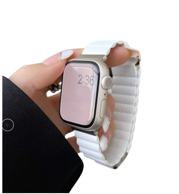 シンプルで洗練された純白のレザーバンドは、どんなスタイルにも調和します。