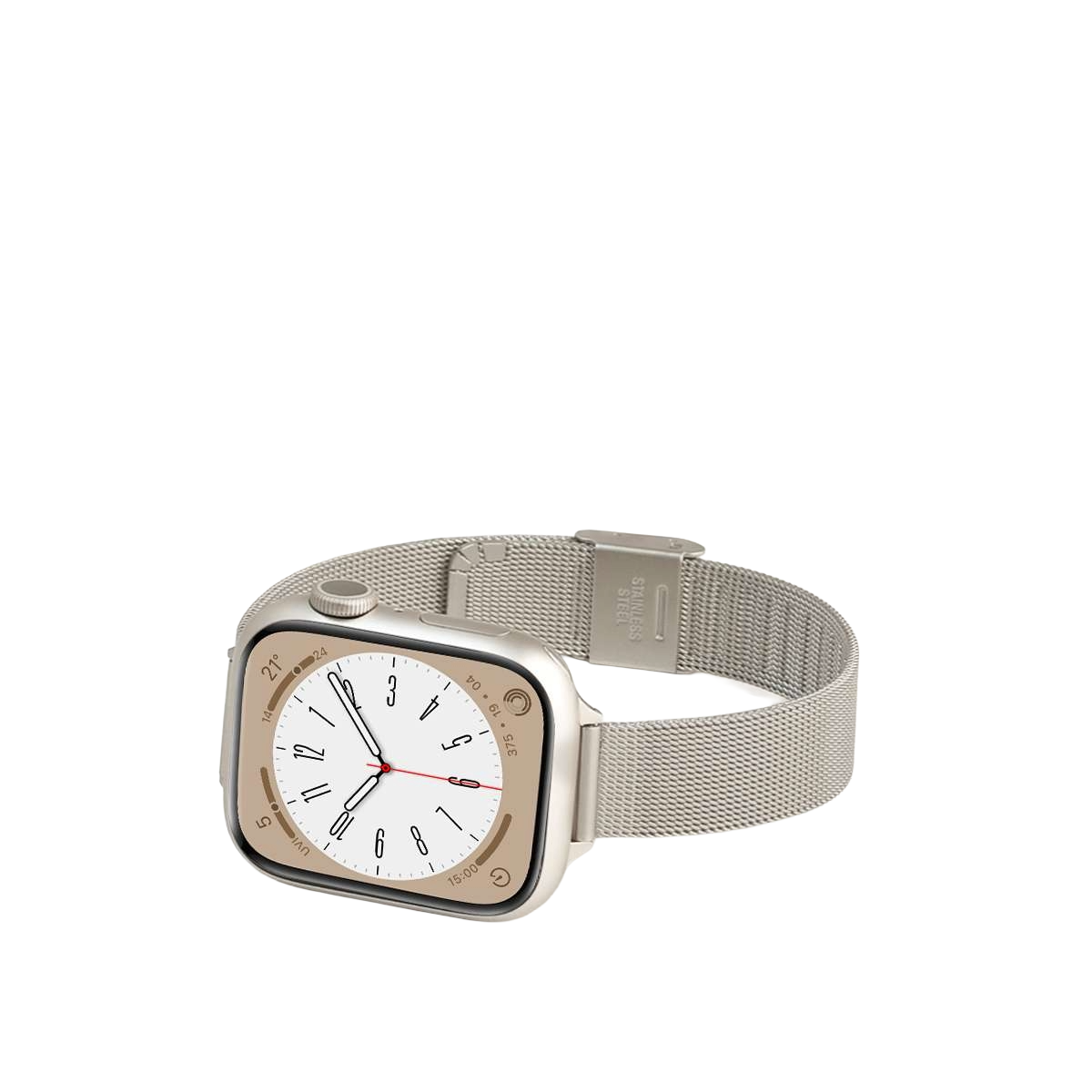 Apple Watchの美しさを引き立てるミラネーゼループタイプのステンレスバンドです。