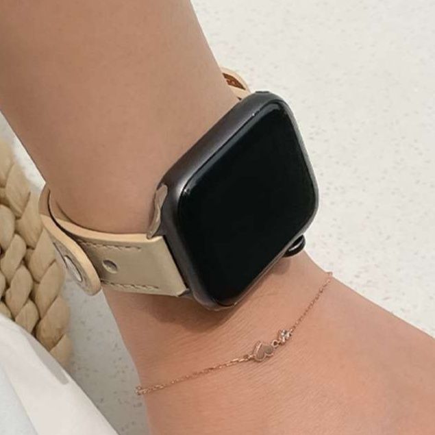 シンプルで洗練された本革アップルウォッチバンド ベージュカラー