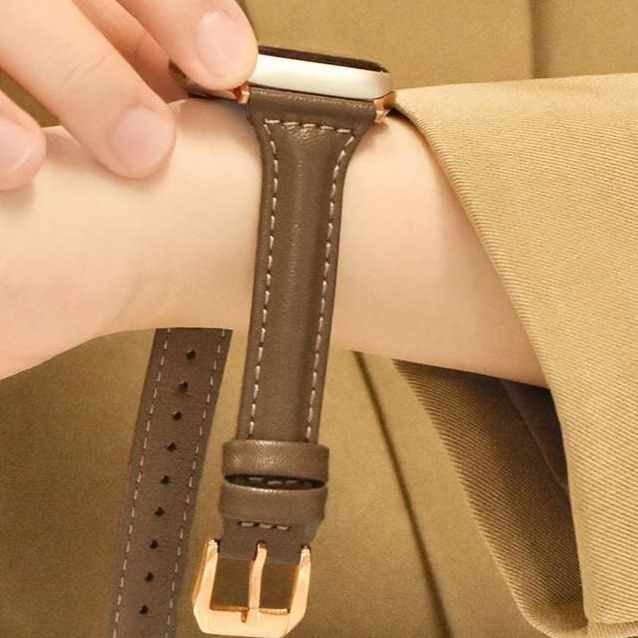上質な本革を使用した細身デザインのアップルウォッチバンドは、腕元をすっきりと見せたい方におすすめです。