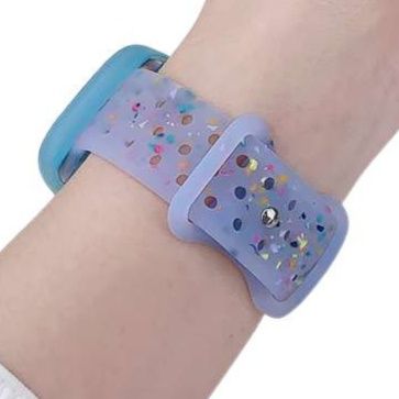 淡い水色をベースに、カラフルなスプリンクルが散りばめられたアップルウォッチバンドです。