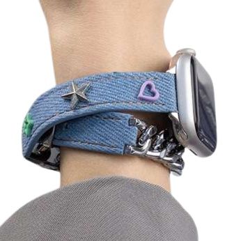 Apple Watch SE対応おしゃれデニムチャーム付きバンド