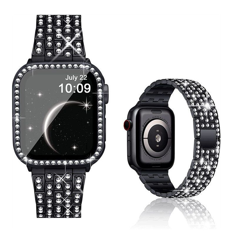アップルウォッチ用キラキラブラック装飾バンド シックな輝き