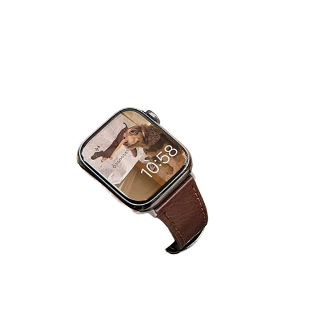 レザー特有の滑らかな質感と深みのある色合いが、アップルウォッチの洗練されたデザインと見事に調和します。