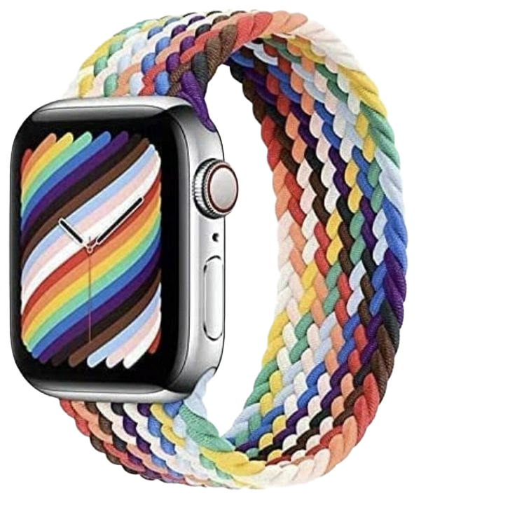 多彩なカラーを組み合わせたレインボー編み込みが魅力のアップルウォッチバンドソロループです。