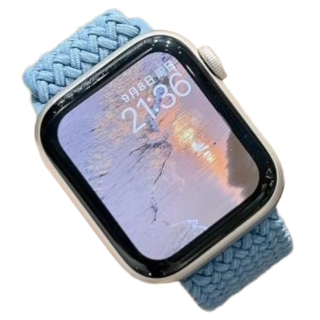 アップルウォッチバンドソロループ 伸縮性抜群の編み込みブルーデザイン