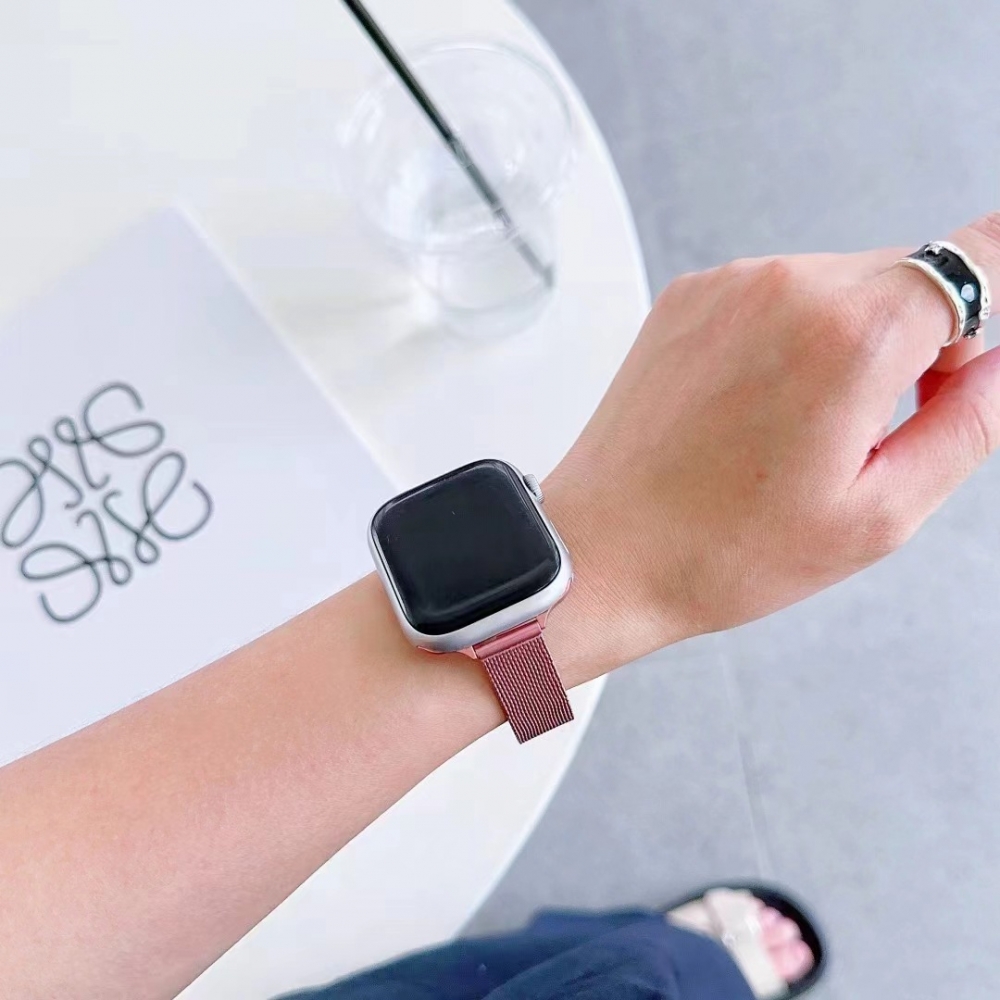 繊細な金属メッシュで編み上げられたアップルウォッチバンド。薄型設計でありながら優れた耐久性を実現。