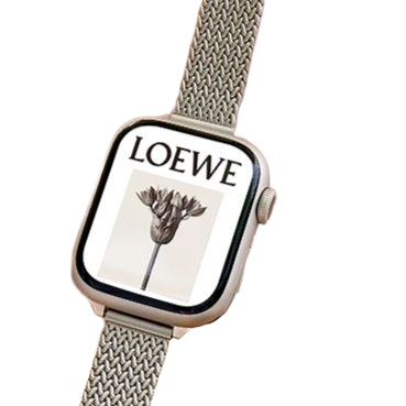 繊細な金属メッシュ編み込みが手首に優雅に馴染むアップルウォッチバンドです。