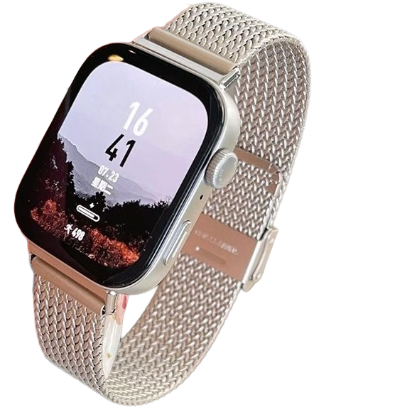 緻密に編み込まれた金属メッシュが高級感を演出するアップルウォッチバンドです。