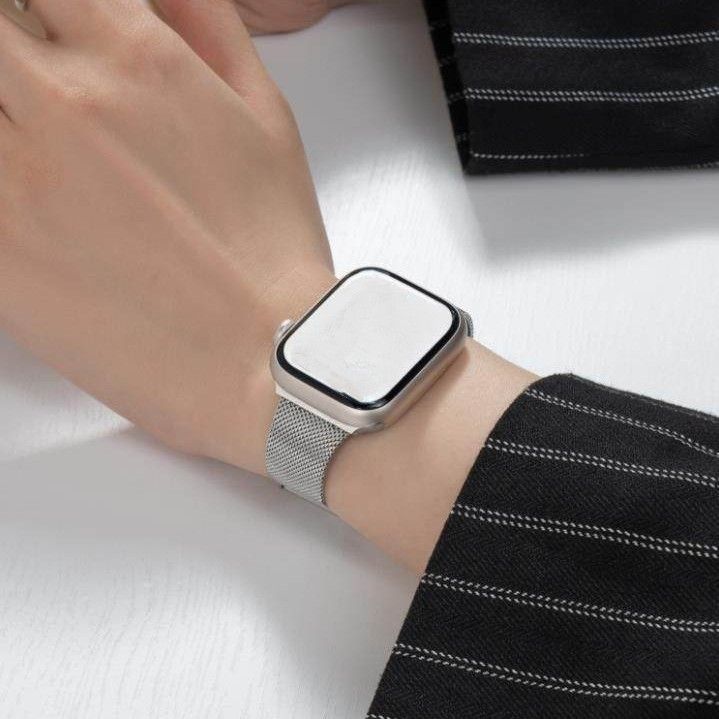 洗練された高級感あふれるアップルウォッチバンド。 上質なステンレス製メッシュが手元をスマートに演出します。 マグネット式で着脱が簡単で、サイズ調整も自在に行えます。 耐久性に優れた素材を使用し、日常使いからビジネスシーンまで幅広く対応します。