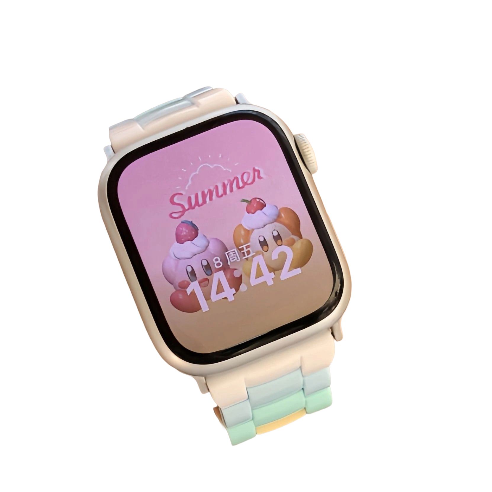 優しい色合いが織りなす美しいコントラストのアップルウォッチバンドです。