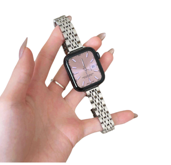 高級感漂うステンレス製のアップルウォッチバンド。シルバーとゴールドの2色から選べ、どんなスタイルにもマッチします。耐久性に優れ、エレガントな印象を与えるデザインは、ビジネスシーンからカジュアルまで幅広く活躍。簡単な着脱で快適な装着感を実現し、日常使いにも最適です。あなたのアップルウォッチを一層引き立てるアイテムです。