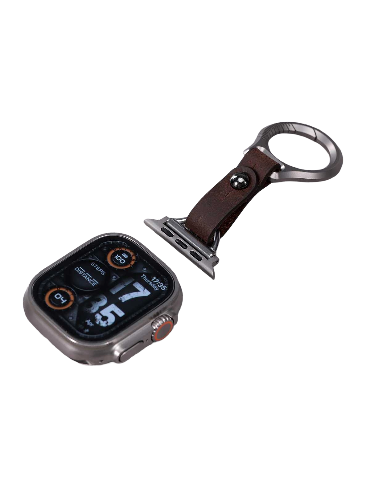 アップルウォッチバンドの新しいスタイルを提案する洗練されたレザーアクセサリー。 金属製リングと高品質な本革を組み合わせた独創的なデザインで、腕時計としてもキーホルダーとしても使用可能。 職人による丁寧な縫製と頑丈な金具が特徴のこのレザー製品は、日常使いにも耐える実用性と上質な風合いを兼ね備えています。
