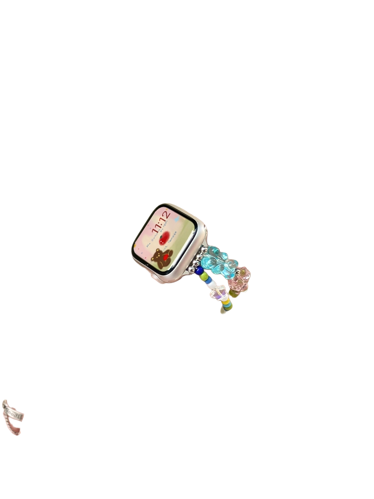 かわいいくま型のビーズと鮮やかな丸粒ビーズを組み合わせた遊び心あふれるアップルウォッチバンドです。