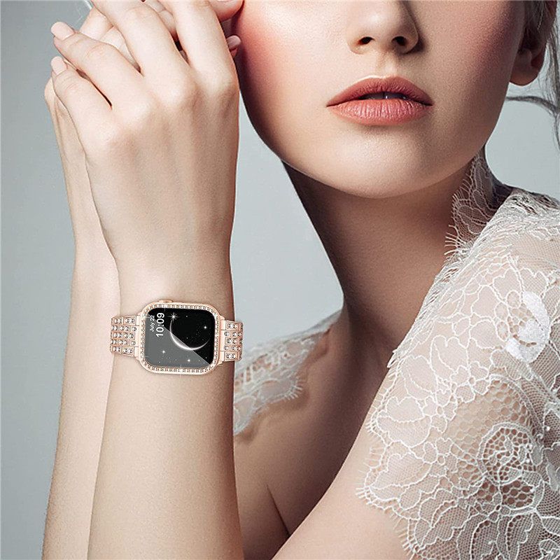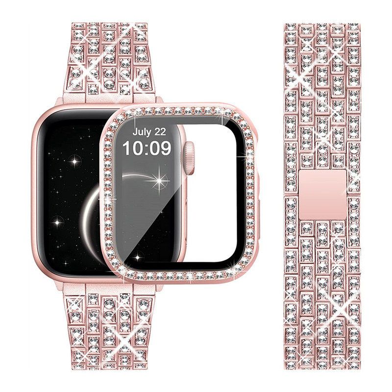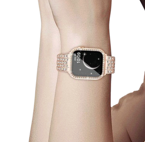 上質なアップルウォッチバンドで日常に輝きを。 輝くダイヤモンドラインストーンを散りばめた高級ステンレスバンドが腕元を華やかに演出。 時計本体用の装飾ケースもセットで、きらめく光沢が贅沢な存在感を放ちます。 特別な場面にふさわしい洗練されたアクセサリーです。