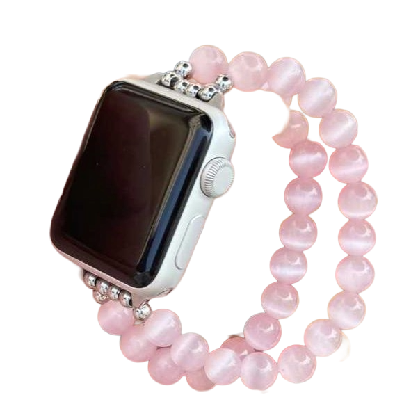 アップルウォッチバンドの新たなスタイルを提案する天然石ビーズの二連デザイン。 上品な透明感と輝きが手元を美しく飾りながら、スポーツシーンでも邪魔にならない実用性を兼ね備えています。 伸縮性のある仕様で着脱も簡単、汗や水に強い素材を使用したアップルウォッチバンドは、日常使いからスポーツまで幅広くお使いいただけます。