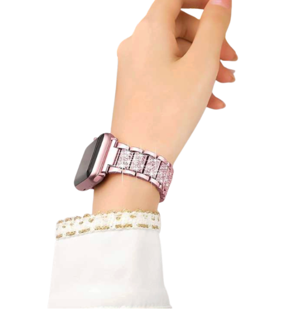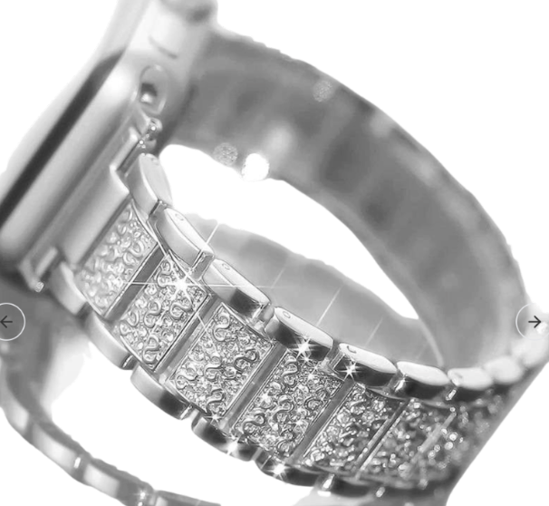 ダイヤモンドのような装飾が施されたバンドが、腕元に高級感と華やかさを添えます。