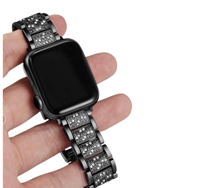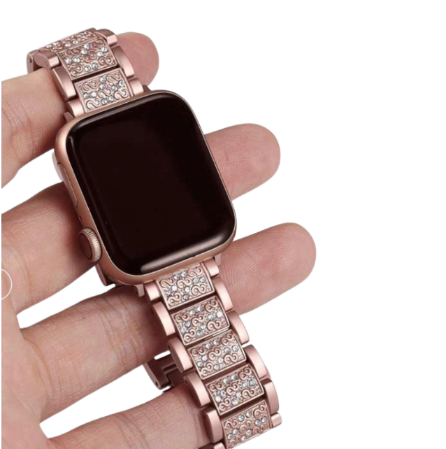 高級感溢れるステンレス製アップルウォッチバンド。 きらめくクリスタルをあしらい、エレガントな美しさを演出。 丈夫なステンレス素材で作られており、装着感も抜群。 シリーズ2以降に対応し、日常使いからパーティーまで幅広いシーンで活躍する華やかなアクセサリー。