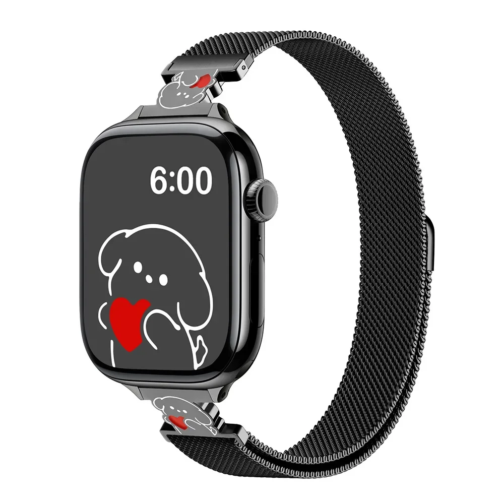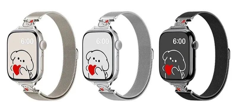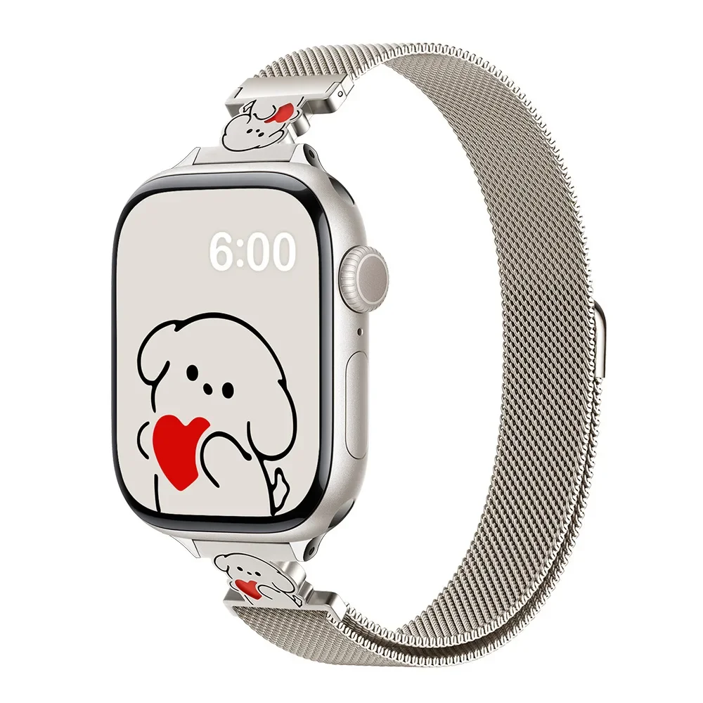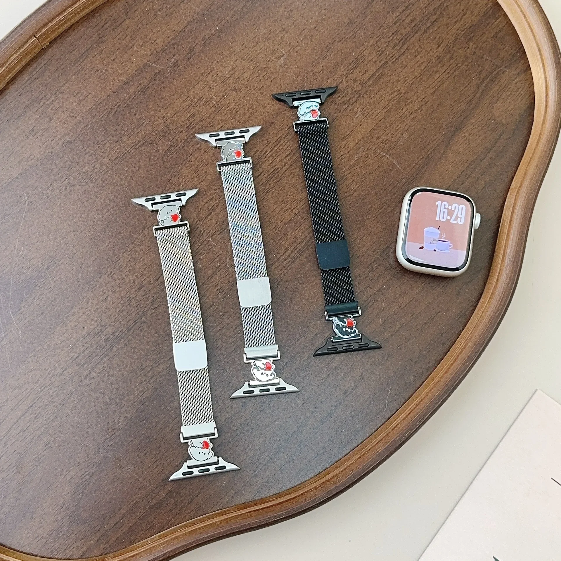 可愛らしい動物のキャラクターが装飾された、アップルウォッチバンドです。