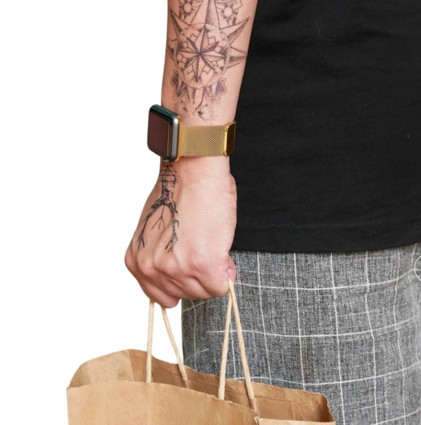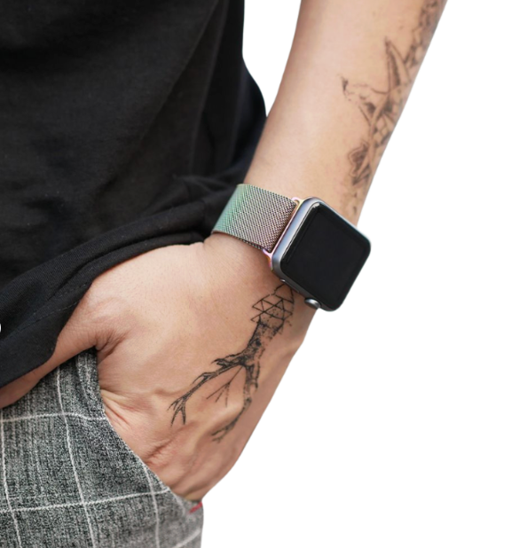 細かなメッシュ構造が美しい、ミラネーゼタイプのApple Watch用メタルバンドです。