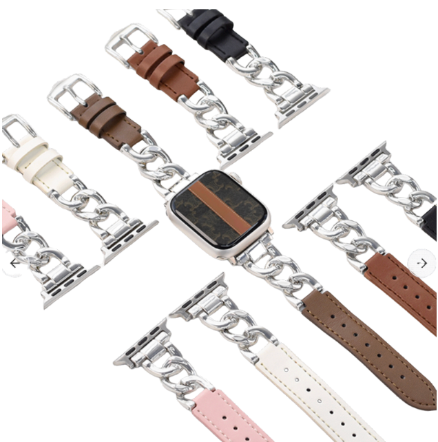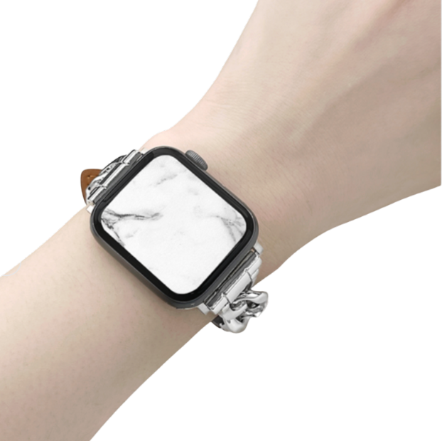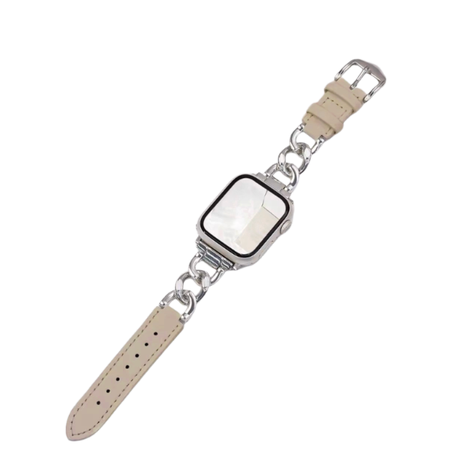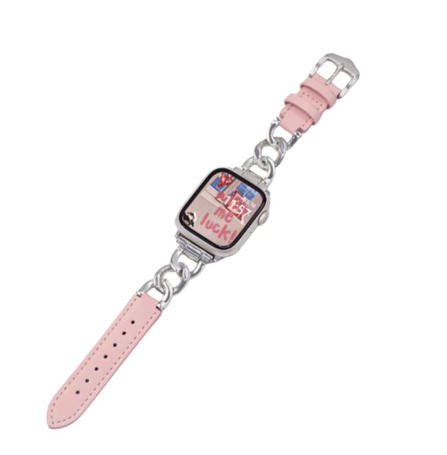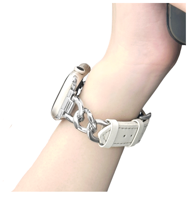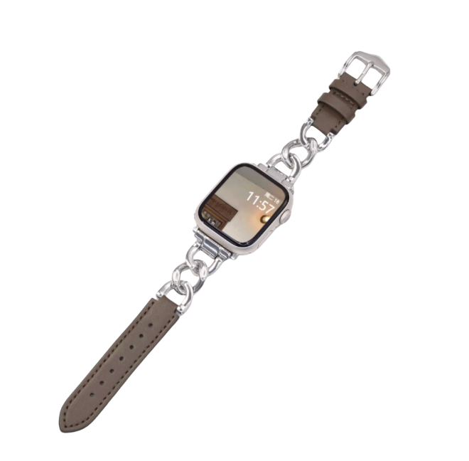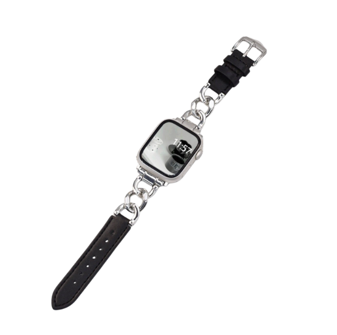 メタルとレザーを組み合わせた、ブレスレット感覚で楽しめるApple Watch用バンドです。 細身チェーンデザインが、手元をすっきりと上品に演出します。 ほどよい存在感があり、アクセサリーのように身につけられます。 普段使いはもちろん、きれいめコーデやお出かけにもおすすめ。 大人の雰囲気を引き立てる、個性派デザインです。