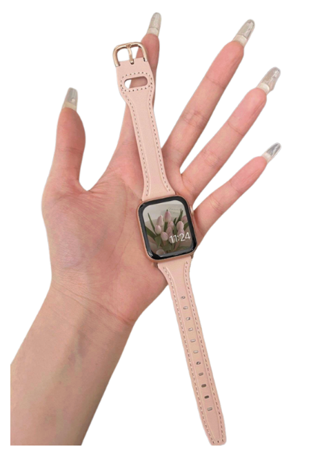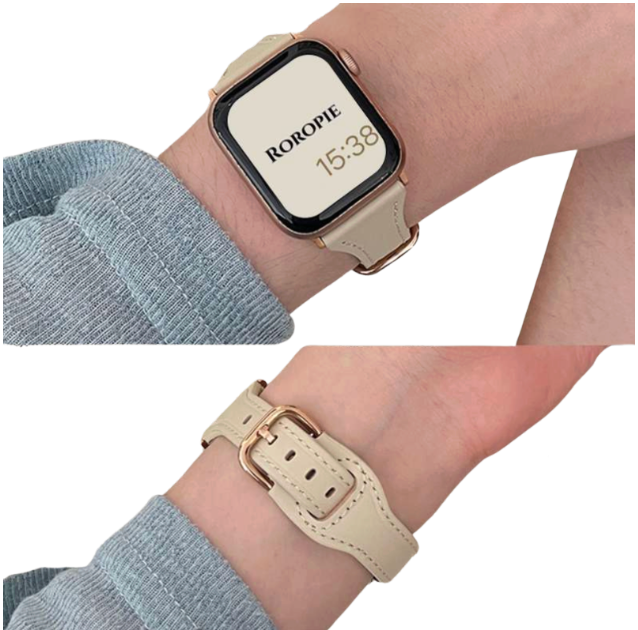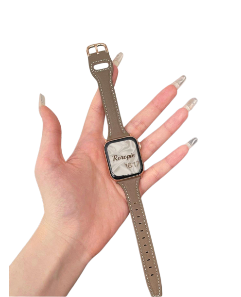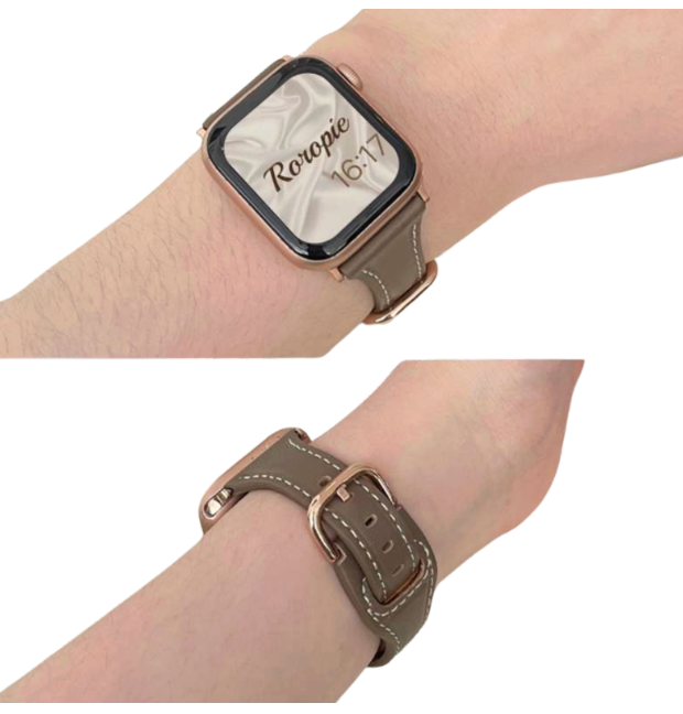本革を使用したアップルウォッチバンドは、上品な色合いと洗練されたデザインが特徴です。美しいステッチがアクセントとなり、シンプルながらも存在感を放ちます。ゴールドカラーのバックルが高級感を引き立て、ビジネスシーンからカジュアルな場面まで幅広く活躍します。耐久性にも優れたこのレザーバンドは、実用性とスタイルを兼ね備えた理想的なアイテムです。