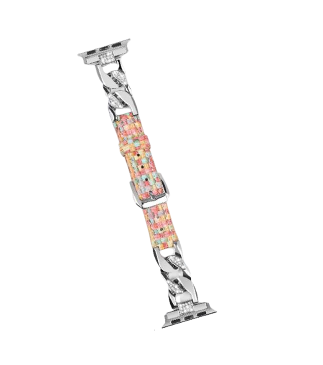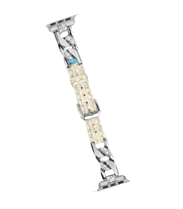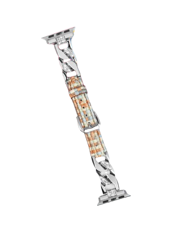 アップルウォッチバンドとして最適なベルトは、華やかさと独自のデザインが魅力です。チェーンと装飾的なバンドが組み合わさり、個性的なスタイルを演出します。多彩なビーズ調素材が春の訪れを感じさせ、腕元をおしゃれに彩ります。さらに、花の壁紙を表示することで、より一層の魅力を引き出します。あなたのアップルウォッチにぴったりのアイテムです。