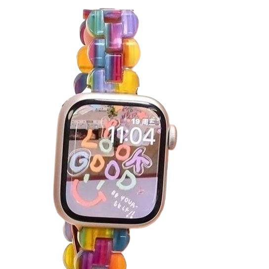アップルウォッチ用の樹脂製バンドは、透明感のある素材で構成され、宝石のような美しい輝きを放ちます。軽量で心地よい装着感を実現し、水や汗に強い実用性も兼ね備えています。多様なシーンやファッションにマッチするデザインは、おしゃれなアクセサリーとしても高評価。アップルウォッチをスタイリッシュに演出するための理想的な選択肢です。