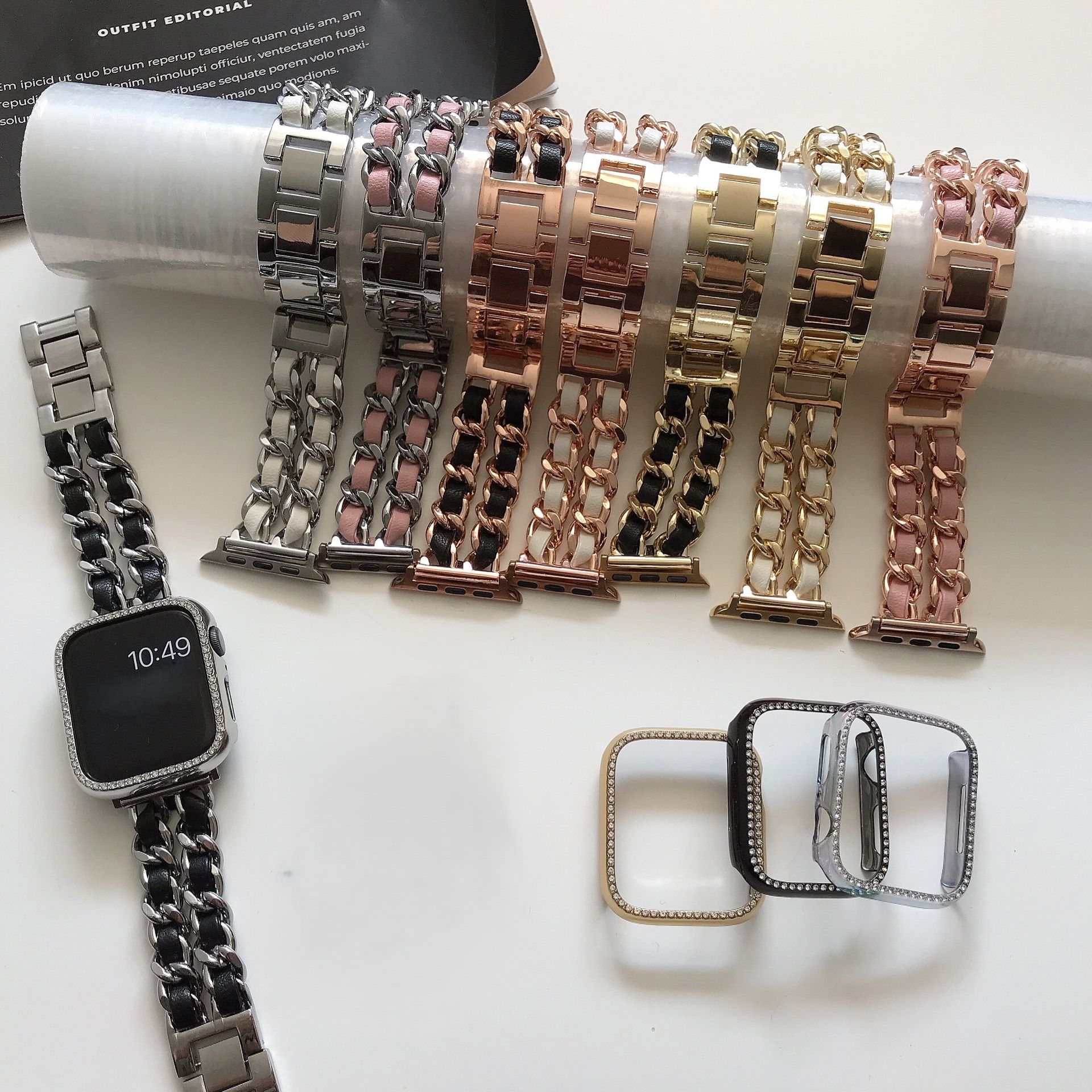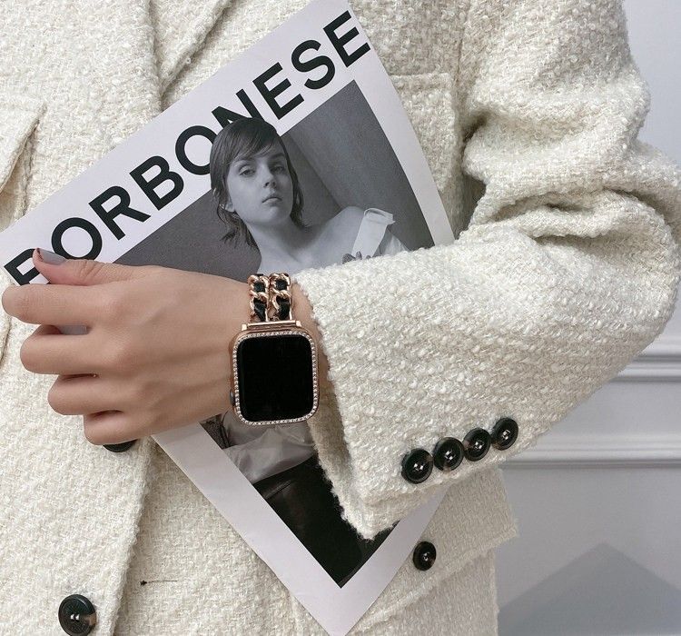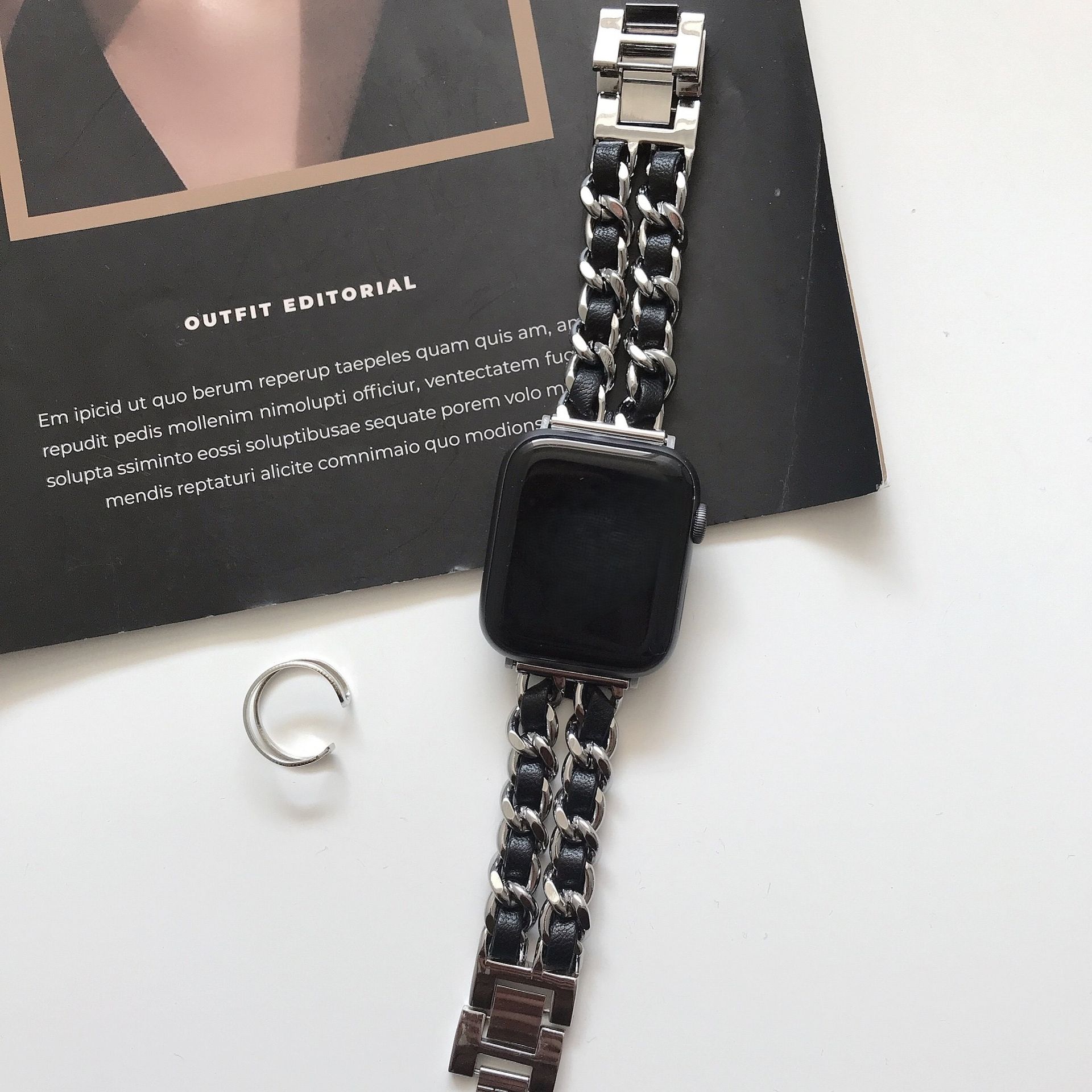 小香風デザインを取り入れた、メタルチェーンタイプのApple Watch用バンドです。 繊細なチェーンが手元を美しく見せ、上品な雰囲気を演出します。 アクセサリー感覚で身につけられ、コーディネートのアクセントに。 ほどよい重みがあり、安定感のある着け心地。 日常使いからお出かけまで、幅広いシーンで活躍します。