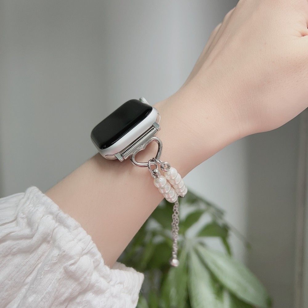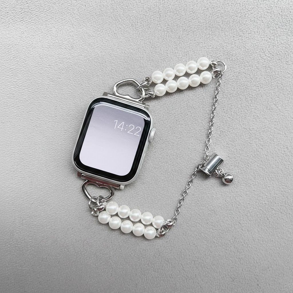 ビーズをあしらった、アクセサリー感覚で楽しめるApple Watch用バンドです。 手元にさりげない華やかさをプラスし、コーディネートのポイントに。 軽やかな着け心地で、長時間の使用も快適。 普段使いからお出かけまで幅広く活躍します。 交換用バンドとして、気分に合わせて楽しめるデザインです。