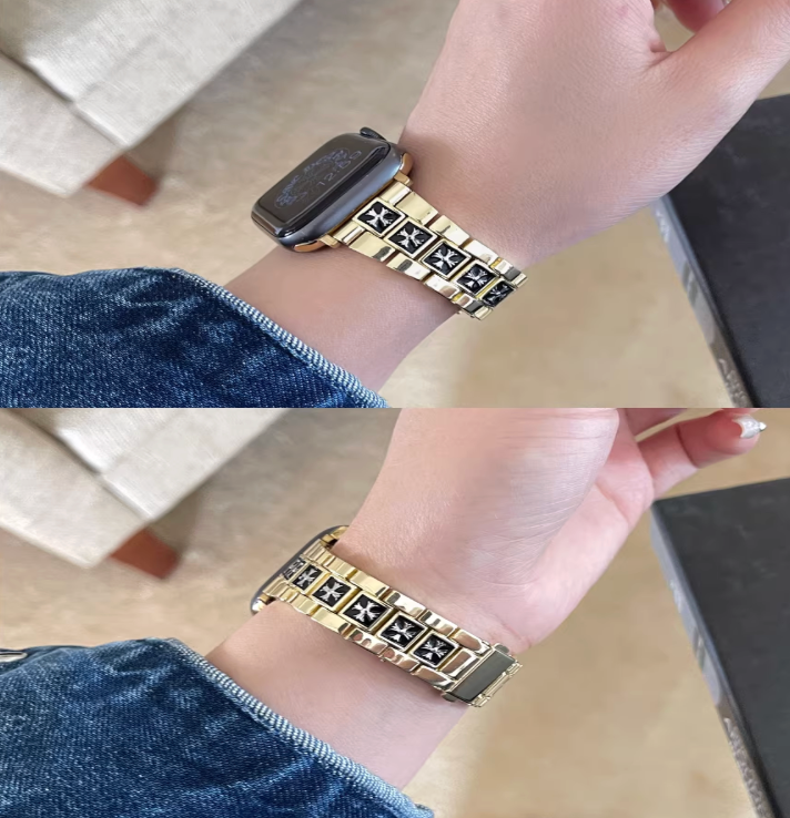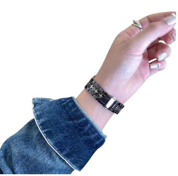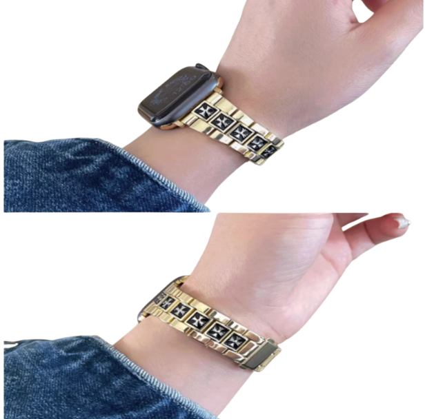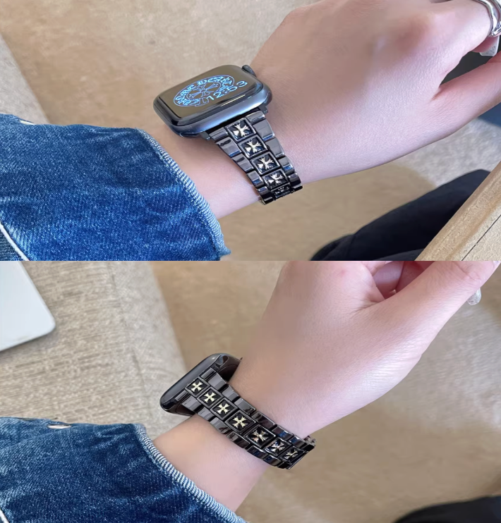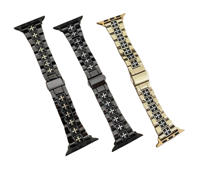 高級感あふれるアップルウォッチ用ステンレスバンド。十字架モチーフのエッジの効いたデザインが特徴で、時計面には華やかな紋章が施されています。個性的でスタイリッシュな印象を与え、耐久性と装飾性を兼ね備えたこのバンドは、日常使いはもちろん特別なシーンにもぴったりです。洗練されたスタイルを手に入れ、あなたのアップルウォッチを引き立てましょう。