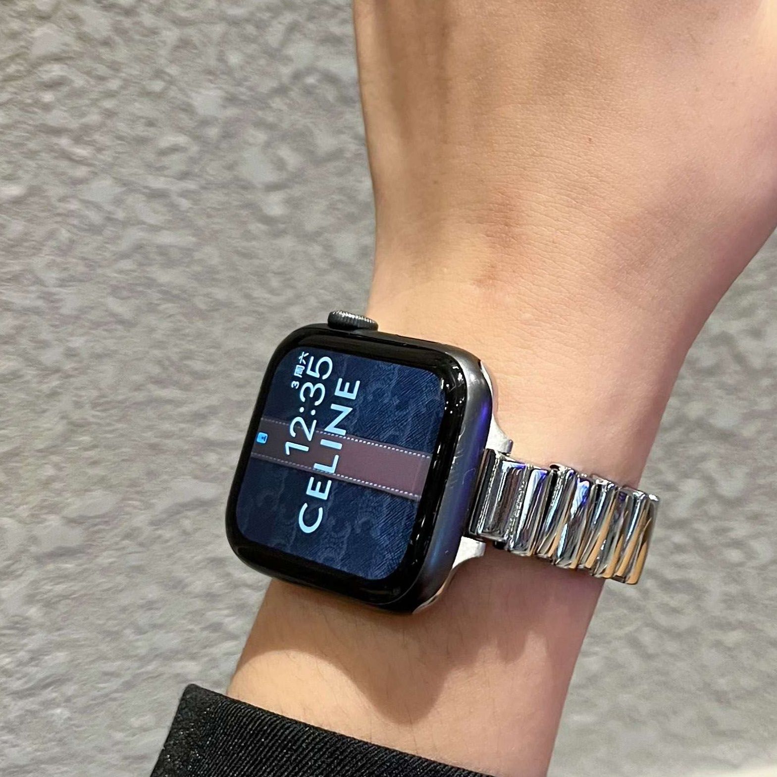 手首に優しくフィットする伸縮式デザインのアップルウォッチバンドです。