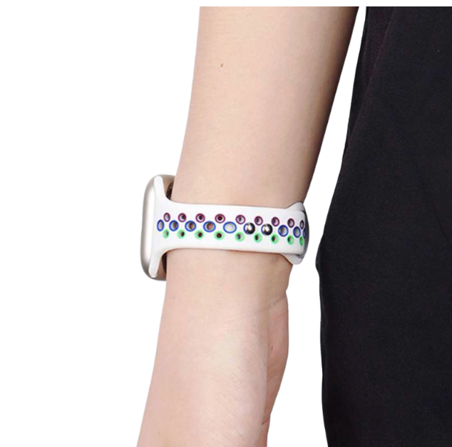 アップルウォッチバンド対応の軽量シリコン製スポーツバンド。 ドット模様が施されたスタイリッシュなデザインで、スポーツシーンに最適。 ゴム素材とラバー加工で耐久性に優れ、通気性も確保。 運動時の蒸れを軽減し、快適な装着感を実現するスポーツカテゴリの定番アイテム。